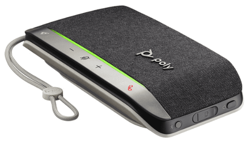 This is Zoom certified that has a capacitive button that includes a programmable button that you can set for redial, play/pause music and more. Poly Sync 20 supports Bluetooth v5.0 for use with any smartphone — Android or iOS. It has a 28-inch USB-A (Standard USB) cable that wraps around the smartphone when not in use to connect to a Windows or macOS computer. And it has a USB-A port for charging your smartphone. It works as an external battery.